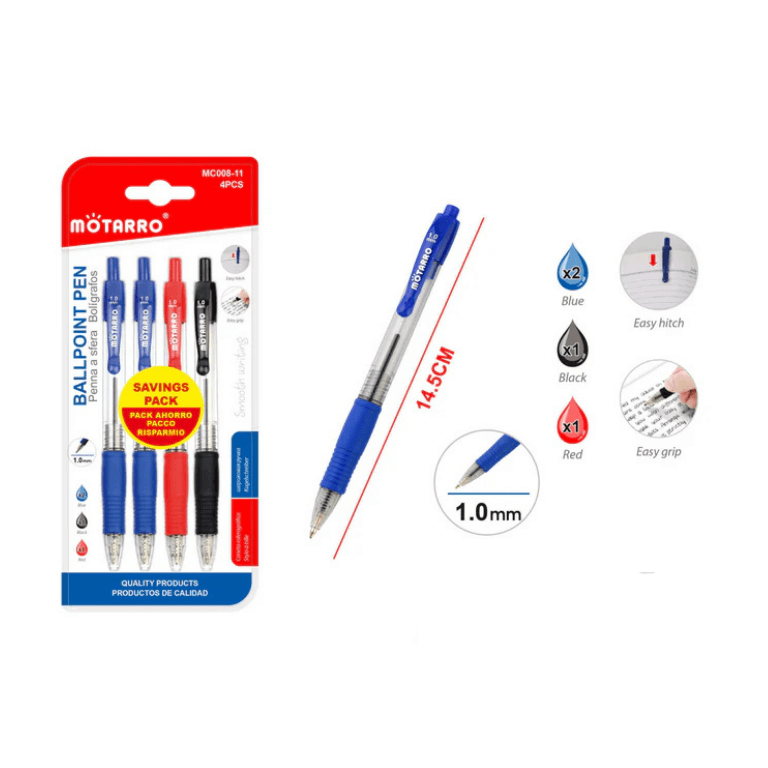 Brand: MOTARRO • Pack quantity: 4 pcs/card • Colour: Mix colour • Style: Ball pen