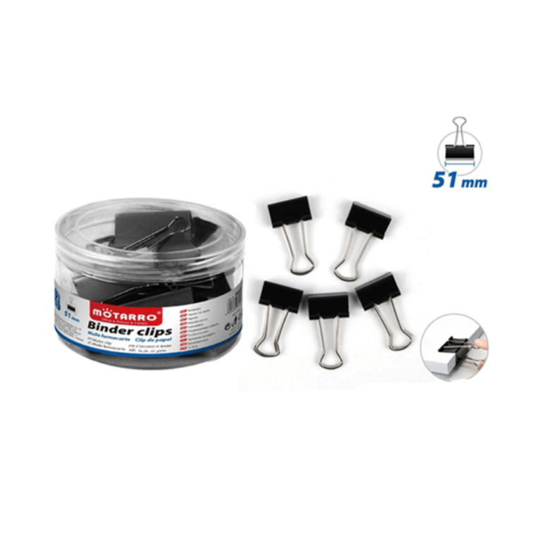 Brand: MOTARRO • Size: 51 mm • Pack quantity: 12 pcs • Style: Binder clips