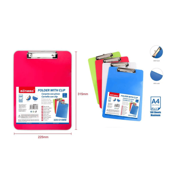 Brand: MOTARRO • Format: A4 • Colour: Mix colour • Style: Folder with clip
