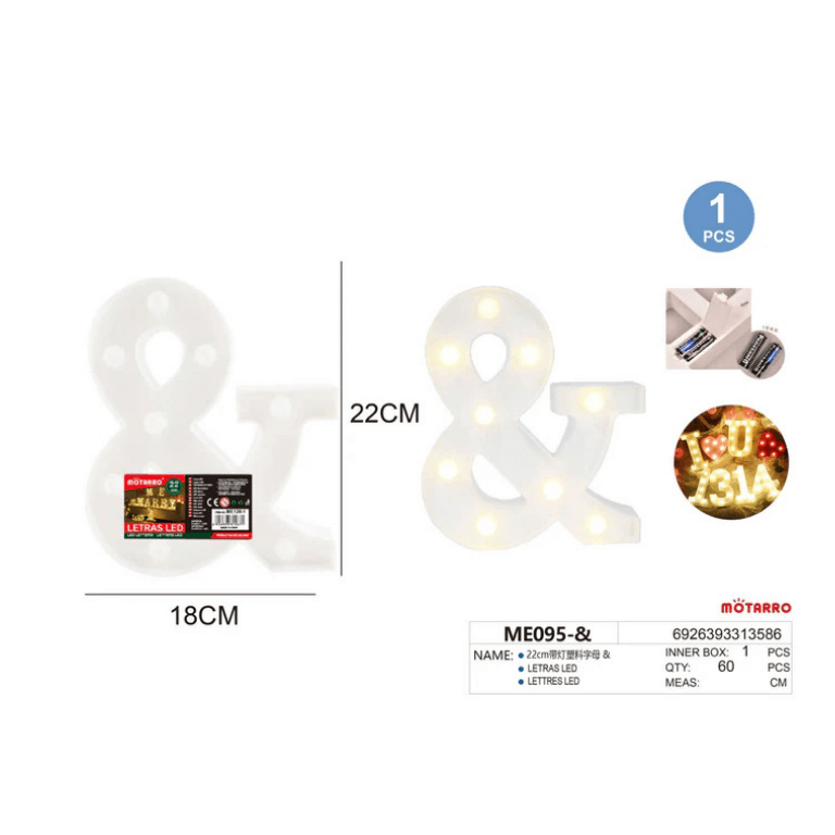 Brand: MOTARRO • Size: 22 cm • Style: LED letter “&”